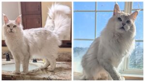 Eros is a beautiful, large silver shaded boy from Canada. His birthday is November 18, 2024 and we are looking forward to our new babies from him. He has come to us to replace Boaz who retired in 2025. We have several of Boaz’s daughters to make beautiful silver shaded kittens with Eros. Eros is a big, loving cat who is sweet to all. He has clear genetics and a good echocardiogram.